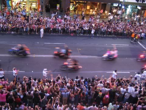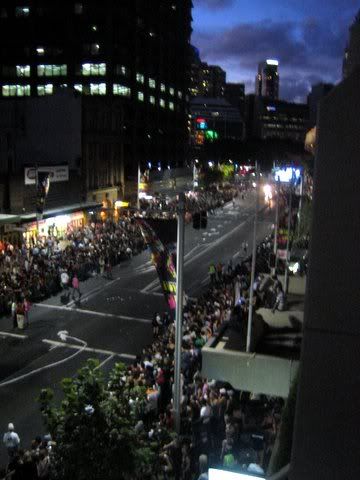 Our view from Jason's 3rd floor balcony overlooking the parade route. It was the best view money couldn't buy!