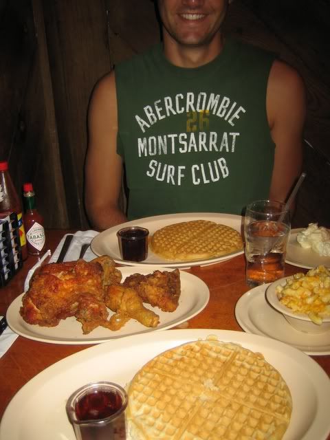 If you're not familiar with "Roscoe's Chicken and Waffles," you're probably trying to figure out what exactly the appeal is, right? Well, belive me, you have to try this. We ordered a 1/2 chicken fried Southern Style and 2 waffels. We also ordered a side of mac-n-cheese, which was so delicious. Roscoe's also serves up an awesome omelette and other dishes that are not for the health-conscious!