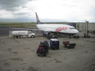 Here's a picture of our Aloha Boeing 737-700 that took us from Kahului Maui to San Diego. (Notice the blended winglets at the end of the wingtip.)