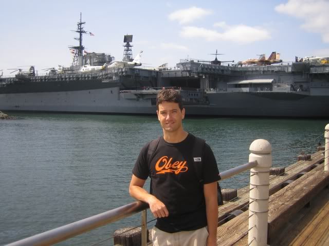 Gavin in front of the USS Midway.